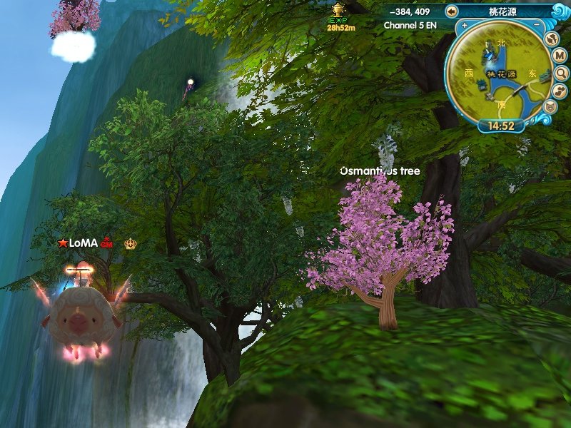 Osmanthus tree Located on the rock pile northeast of Chinese Moon Goddess (-403, 410), or (-382, 404)