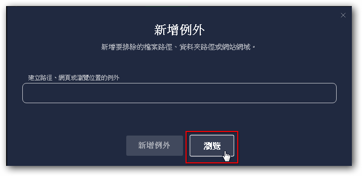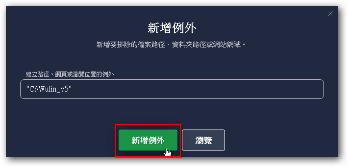 7. 返回後按「新增例外」即完成。