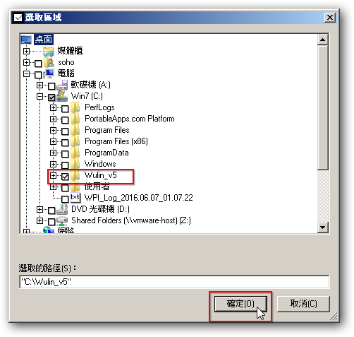 6. 選擇「武林資料夾」並按「確定」鍵返回。