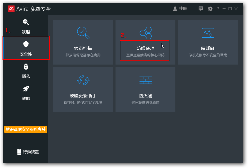 1. 按兩下桌面「Avira」圖示或按右下「常駐程式」開啟防毒軟體。
