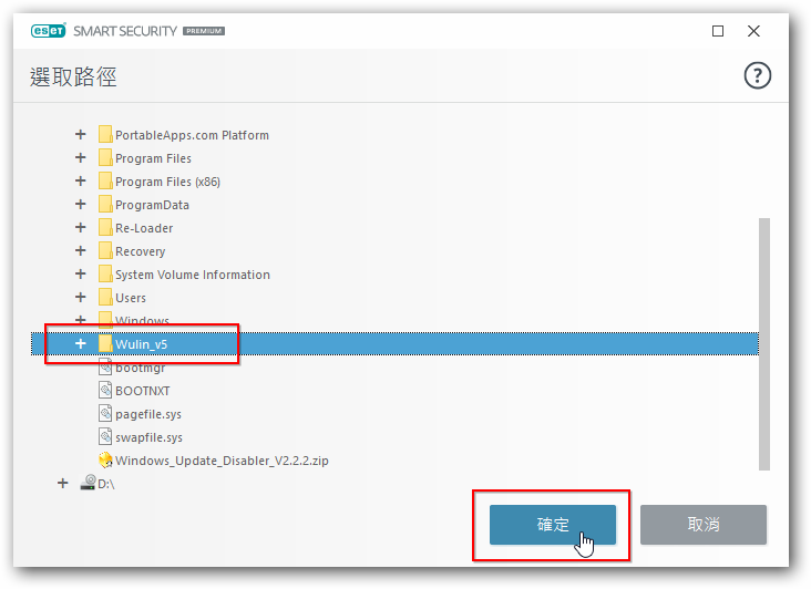 6. 選擇「武林資料夾」並按「確定」鍵返回上一頁。