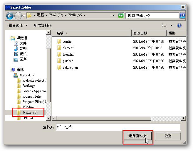 6. 選擇「武林資料夾」並按「選擇資料夾」返回上一頁。