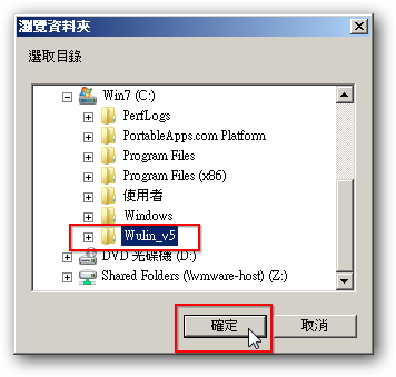 7. 選擇「武林資料夾」並按「確定」返回上一頁。