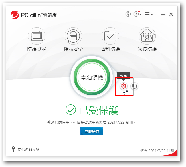 1. 按兩下桌面「PC-cillin」圖示或按右下「常駐程式」開啟防毒軟體。