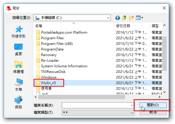 5. 選擇「武林資料夾」並按「開啟」鍵返回上一頁。