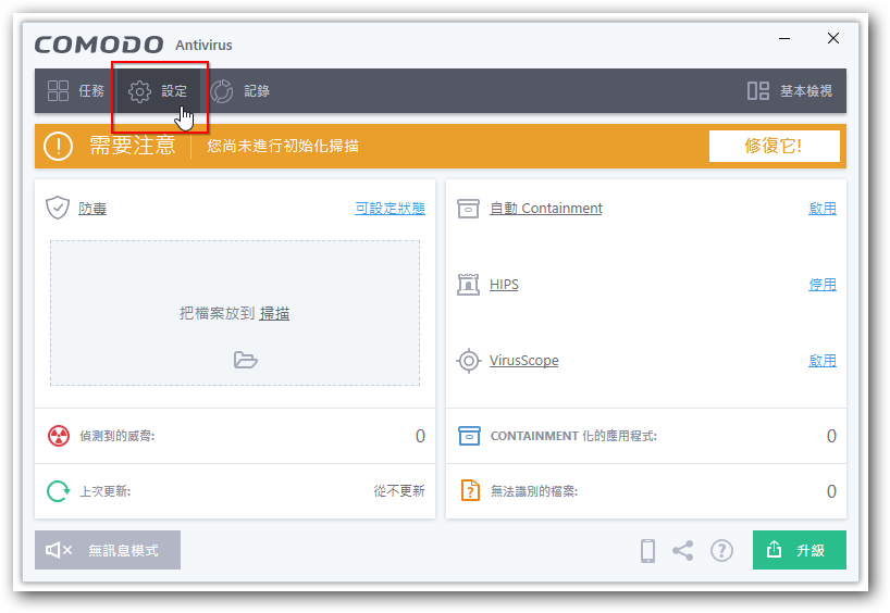 1. 按兩下桌面「Comodo AntiVirus」圖示或按右下「常駐程式」開啟防毒軟體。